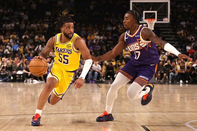 但最让人意外的还是湖人。休赛期老詹选择执行1年5260万球员选项后,湖人告别芬尼史密斯,满足东契奇的战术要求连续签下拉拉维亚+艾顿+斯马特。季前赛打了两场比赛,詹姆斯和东契奇都缺阵,首战22分惨败太阳,次战再输勇士,当然,球队两位核心不在,进攻几乎没有任何参考意义,但防守可是指着这套家底。可很明显的是,战术混乱,彼此之间完全没默契。艾顿黄油手,拉拉维亚成为了对手的八倍镜,但湖人新赛季处境最尴尬的,反而是布朗尼,因为他确实不太适合打NBA。